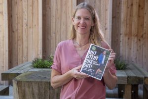 Antje von Dewitz, VAUDE Geschäftsführerin, und Bundesentwicklungsminister Gerd Müller unterhalten sich am Firmensitz von VAUDE in Tettnang über ihre neu erschienen Bücher: „Mut steht uns