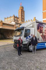 Am Dienstag, 24. November 2020, hat der Präsident von Renault Trucks, Bruno Blin, im Schweizer Rheinfelden einen D Wide Z.E. an den Geschäftsführer der Brauerei