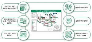 Flucht- und Rettungspläne sind in öffentlichen und gewerblichen Gebäuden wie Produktionshallen, Büros, Praxen, Hotels, Schulen oder Kindergärten gesetzlich vorgeschrieben. Eigentümer und Betreiber sind jedoch häufig