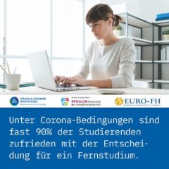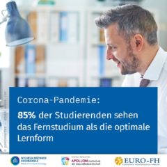 85 % der in der Trendstudie „Studieren und Arbeiten während der Corona-Pandemie“ befragten Studierenden sehen das Fernstudium als die optimale Lernform während einer Pandemie. Sie