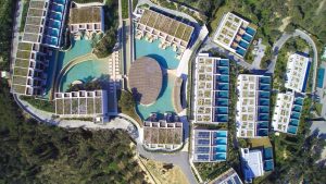 Üppige Vegetation prägt die griechische Insel Zakynthos und bettet das Olea All Suite Hotel mit seiner Gesamtfläche von 7170 m² leicht und natürlich in seine
