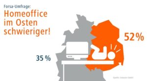 Was ist anders in ostdeutschen Familien? Mehr als die Hälfte (52%) der Angestellten dort gibt an, im Homeoffice durch die Familie, Nachbarn und Haushalt abgelenkt