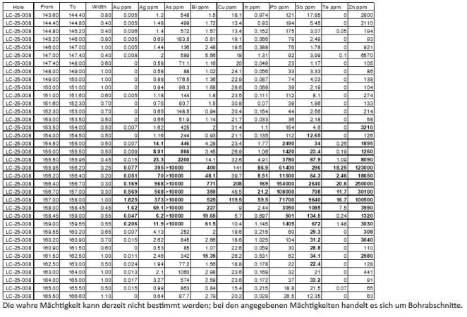 Kingsmen Resources Ltd. (TSXV: KNG) (OTCQB: KNGRF) (FWB: TUY) („Kingsmen“ oder das „Unternehmen“) freut sich, erste Untersuchungsergebnisse aus dem Bohrloch LC-25-008 bekanntzugeben,