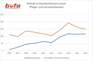 Trotz rückläufiger Opferzahlen bleiben Brandrisiken in Krankenhäusern sowie Pflege- und Senioreneinrichtungen in Deutschland weiterhin auf einem kritischen Niveau. Das zeigt die aktuelle Brandstatistik des bvfa