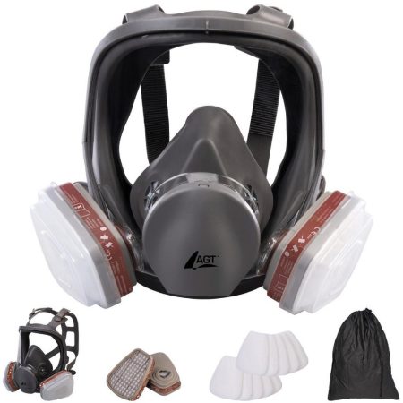 Für den Einsatz in Industrie, Handwerk und bei Heimwerkerarbeiten: Die AGT Vollgesichts-Atemschutzmaske AS-110 mit Filter der Klasse A1P2 (Gasfiltertyp/-klasse A1