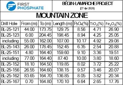 First Phosphate Corp. („First Phosphate“ oder das „Unternehmen“) (CSE: PHOS) (OTCQX: FRSPF) (OTCQX ADR: FPHOY) (FWB: KD0) freut sich, die