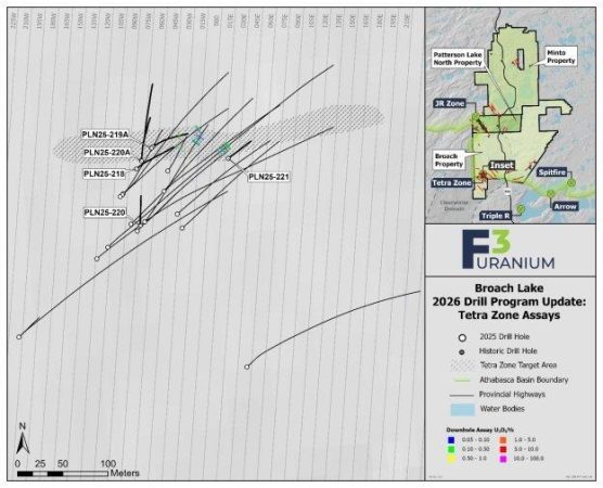 F3 Uranium Corp. (TSV: FUU) (OTCQB: FUUFF) („F3“ oder „das Unternehmen“) freut sich, die letzten Analyseergebnisse des Bohrprogramms 2025 in der