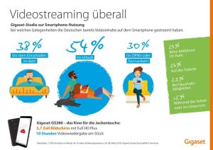 Filme, Serien, Sportangebote, Youtube- oder Mediathekeninhalte – die Bandbreite von Videoinhalten für das Smartphone ist riesig. Gigaset wollte wissen: An welchen Orten nutzen die Deutschen