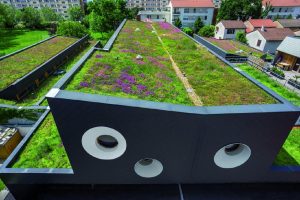 Ein Arbeitsplatz hoch oben auf dem Dach muss neben einer schönen Aussicht vor allem Sicherheit bieten, da keiner abstürzen darf. Solange in der Bauphase eines